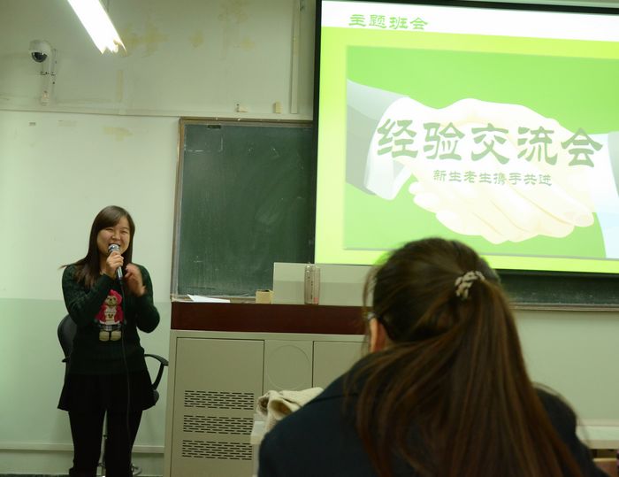 09中澳1的邓洪琳学姐,她与大家分享了保研方面的信息,为大家提出来几点建议:其一是在将来面对多种选择的时候要注意与师长多多交流沟通,少走弯路;其二是充分利用大学的四年养成好的习惯,为以后的提升打下基础;其三是讲究方法与效率,做到有张有弛。09中澳1的常静同学。她在学习与活动两个方面为新生讲述了自己的经验,特别是对于社会活动的参与,常静学姐为我们点出了公司与社会两条路径,并叮嘱大家多注意相关信息,多参加员工会和社会上组织的活动,多参加科研创新项目,扩大交际面,增长见识。10级学长任远为同学们讲解了学习与绩点的重要性。他为同学们详细讲解了英语的相关考试与准备,侧重介绍了出国的注意事项等,揭开了出国选择一直围绕新生的神秘面纱。崔欣扬学姐,她主要针对考研为同学们解答了相关疑惑,而其中反复提及的心态问题,鼓励大家勿过于急功近利,上大学不只是学习与未来的选择问题,调整自身的心态也是老员工活的主线。在刚进入大学的时候,新生失去了备战高考那样明确的目标不免会感到迷茫与彷徨。刘嘉木学长为大家条分缕析的分析了毕业后的就业形势,他就民企、国企、外企等不同的就业简单进行了阐述。让大家有所心理准备。