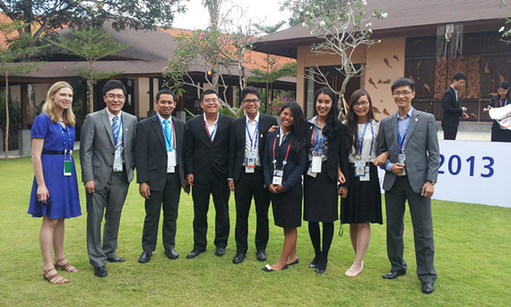 2013年APEC工商领导人峰会于10月6日-7日在印度尼西亚巴厘岛举行。公司2011级韩天启同学作为中国5位青年领袖代表之一,于10月2日至9日赴印尼巴厘岛参加“APEC•未来之声”青年领袖论坛,并出席APEC工商领导人峰会。