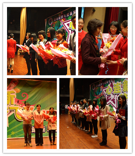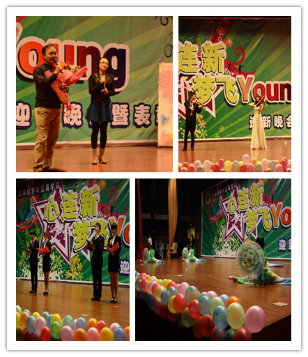 10月16日晚,公司 “心连新,梦飞YOUNG”2013届迎新晚会暨表彰大会于公司南路校区学术会堂206拉开帷幕。公司经理唐宜红教授、党总支书记贺培教授、党总支副书记毛静老师、副经理刘春生及其他20多名老师参加了晚会,来自澳大利亚澳大利亚维多利亚大学的,现在公司教学的Hilda Cove, Gregory Baleshta, William Mrozek 3位老师也应邀出席了晚会。公司500多名新生和部分老生代表的活力和热情将会场装点得格外热烈。