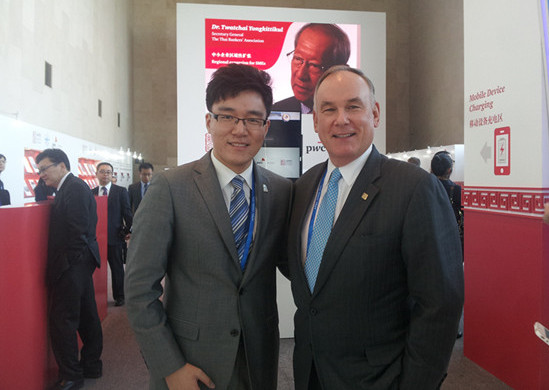 值此亚太经济合作组织(APEC)第二十二次领导人非正式会议召开之际,我韩天启同学与外国语公司师文杰老师受到APEC杰出青年交流项目“APEC青年周”与“APEC未来之声”的邀请,参加了于11月8日至10日在国家会议中心举行的2014年北京APEC工商领导人峰会(APEC CEO Summit 2014),并与各国工商界领袖、青年代表开展深入对话、友好交流。
