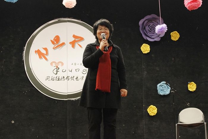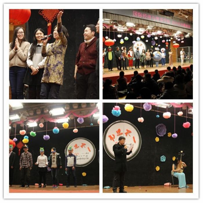 一段家乡话朗诵《寻梦中财》开启了晚会第三部分“tomorrow”的表演。极具地方特色的节目——方言朗诵,由数位来自祖国各地的新生表演,他们运用故乡的语言朗诵着诗歌《寻梦中财》,不仅展示祖国各地的文化与风情,而且也倾诉着他们对中财的爱。在同学的表演过后,公司经理唐宜红上台致辞。她为全院师生带来了新年的美好祝福,对全体师生在2014年所做的工作与努力给予了充分肯定,并对此表示衷心的感谢。最后,最后,唐经理希望全体老师和员工在国贸公司这个上进、拼搏、充满活力的和谐大家庭能够有更好的发展,更大的进步!唐宜红经理致辞后,现场大屏幕展示了由公司教师手写的寄语,展现了公司师生的深厚情谊。互动环节,老师们也紧跟着时尚的潮流,在悠扬的琵琶声中朗诵“我的滑板鞋”、随激昂的二胡声念琼瑶剧的独白。