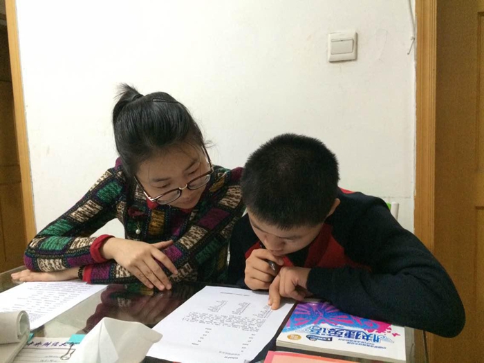 “品中国梦之甘甜”活动中志愿者在进行助学辅导