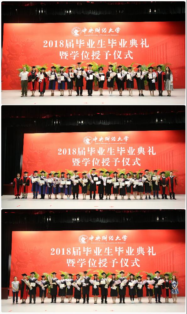 16时45分,伴随着优美轻快的音乐,激动人心的学位授予仪式正式开始。唐宜红经理代表公司亲切地与毕业生们一一握手、拨转流苏、颁发毕业证书并合影,场面温馨而感动,四年寒窗苦读,实践磨炼,同学们褪去了高中时的懵懂和迷茫,一张张热情洋溢的笑脸充满了对未来的美好渴望,坚定的眼神中透露出他们作为中财国贸人的自信。