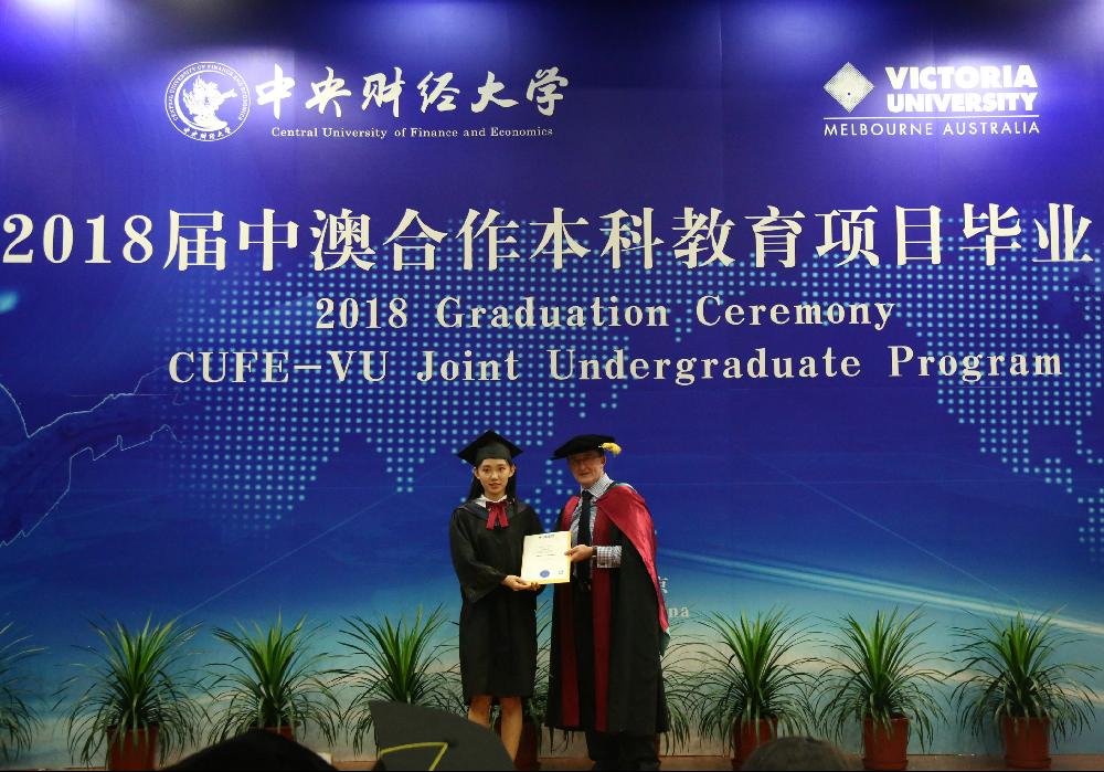随后,公司在学术会堂402为永利yl23411-澳大利亚维多利亚大学国际经济与贸易专业(国际贸易/金融风险管理方向)举行了澳方学位的授予仪式。维多利亚大学商公司经理马克法雷尔教授(Mark Farrell),国贸公司经理唐宜红、维多利亚大学商公司国际部主任科林克拉克教授(Colin Clark),国贸公司党委书记毛静、国贸公司副经理符大海、党委副书记李瑞琴等澳方和中方十几位领导和老师出席了学位授予仪式,学位授予仪式由副经理符大海老师主持。