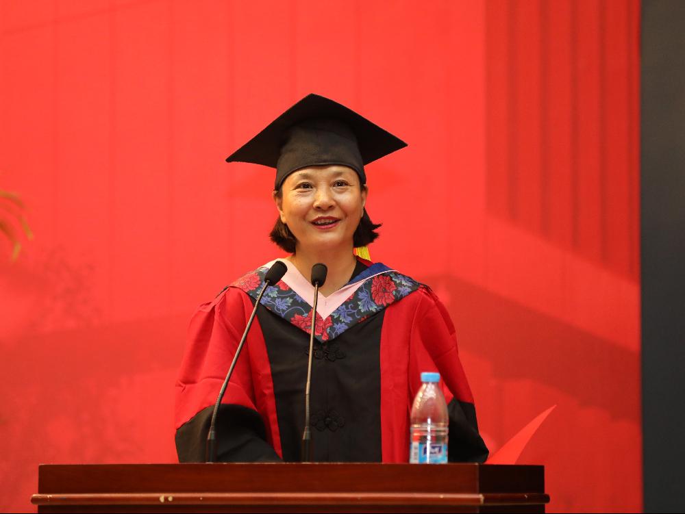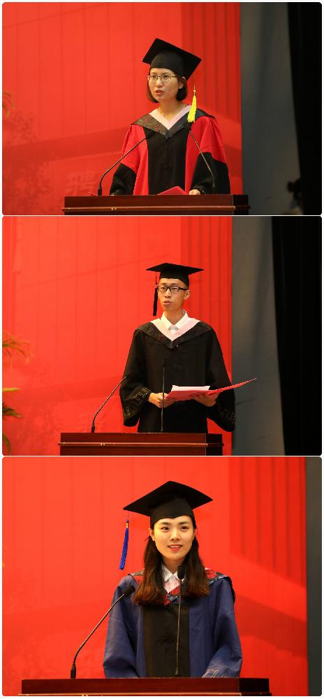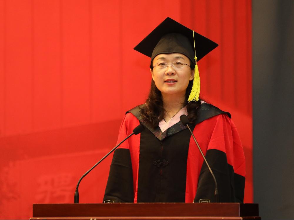 毕业班班主任段玉婉老师作为教师代表发言,她勉励同学们时刻保持积极向上的学习态度,把优秀和勤奋作为自己的习惯。段老师引用了李嘉诚的名言以及雷军和库克的勤奋日常,提出世事洞明皆学问,人情练达即文章。员工只有不断填充新知识,时刻保持学习的态度,才能适应这个日新月异的时代。2014级国际经济与贸易专业叶冬琦和16级国际商务硕士生王晓燕同学作为毕业生代表做了发言,他们回顾了大学几年的学习与生活,表达了对母校和老师们辛勤培育的感谢,感恩身边有一群志同道合的同窗结伴而行,并祝愿诸位毕业生能够乘风破浪,在未来书写新的华彩篇章。
