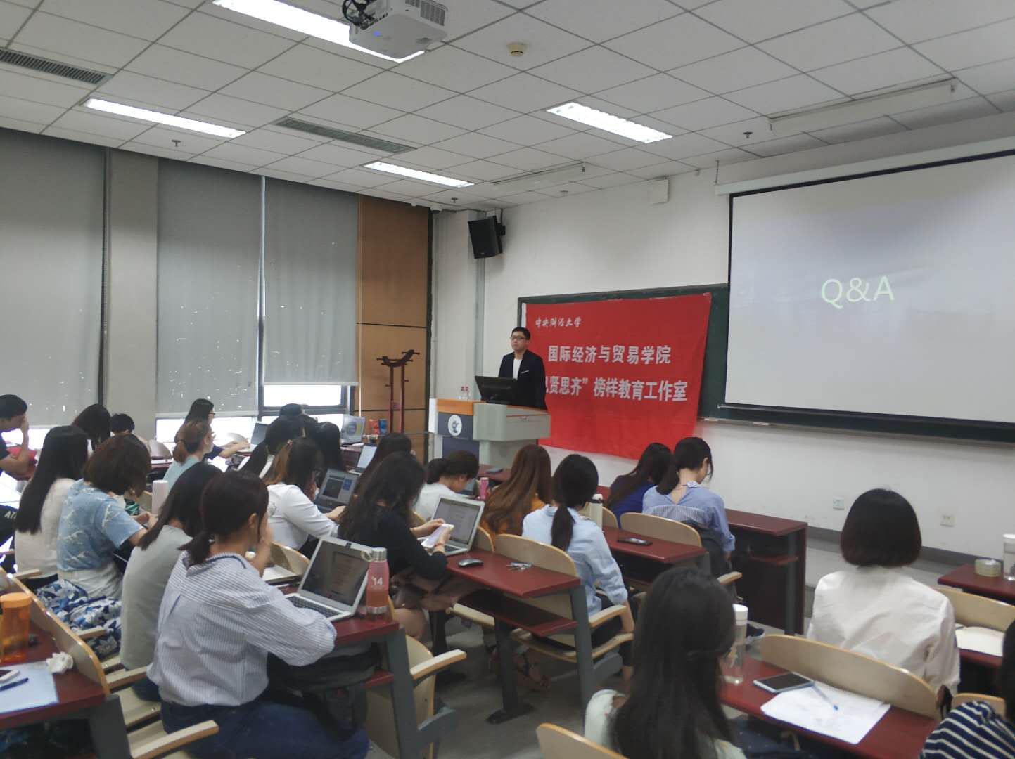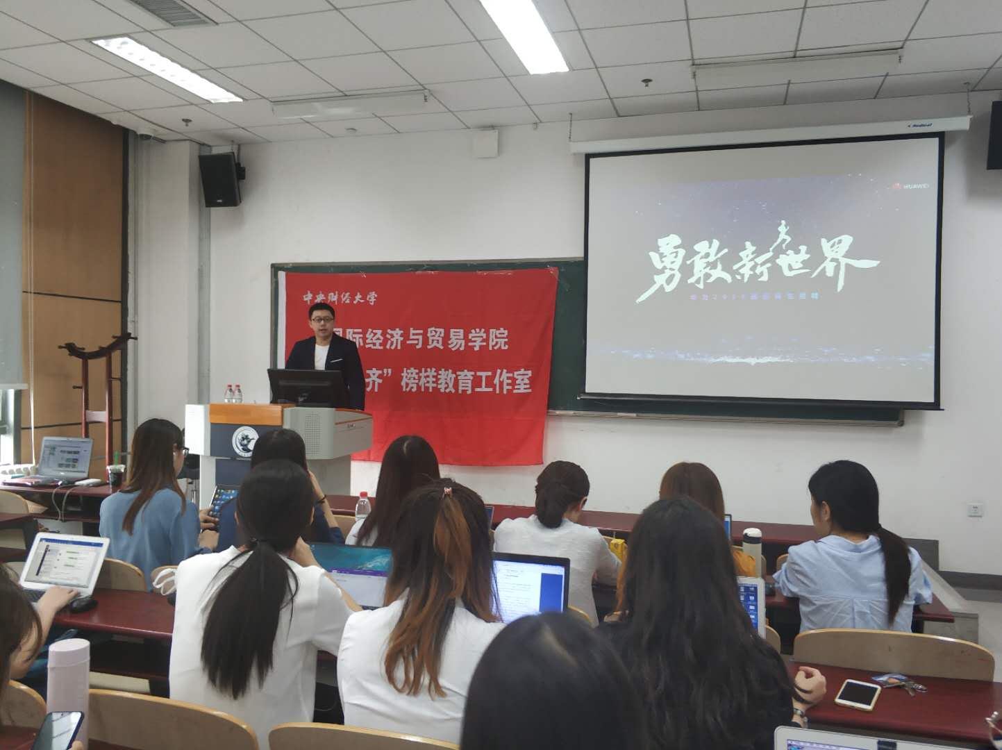 2018年09月14日下午14点,永利yl23411“见贤思齐”榜样教育工作室非常荣幸邀请到了华为财经北京区域招聘负责人王洪亮经理为国贸学子举行专场就业讲座,并与国贸学子进行了深度的交流和座谈,讲座由2015级毕业班辅导员老师邱小花主持。