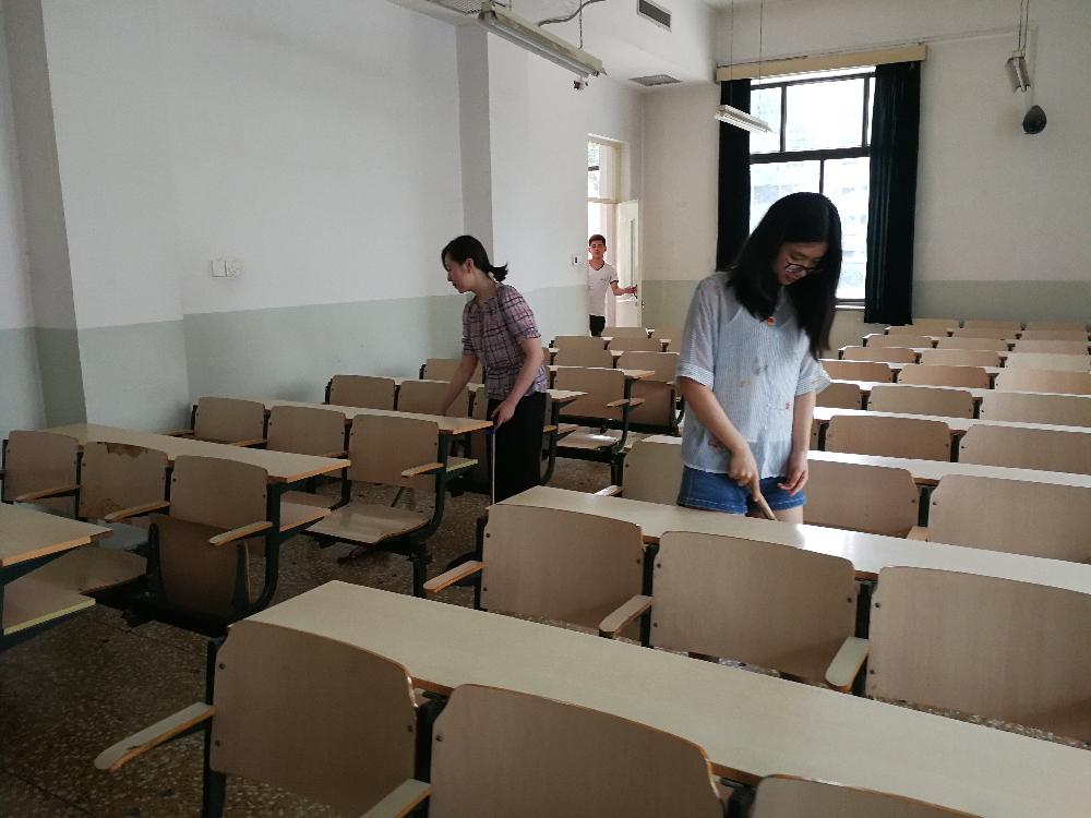 介绍完毕后,同学们便分成两人或三人一组分头行动,前往各个教室擦洗黑板、清理讲台、打扫地板以及清掉同学们上课时遗留的垃圾。在进行了一个多小时紧张辛勤的劳动之后,整栋教学楼各个教室都变得干净了不少。