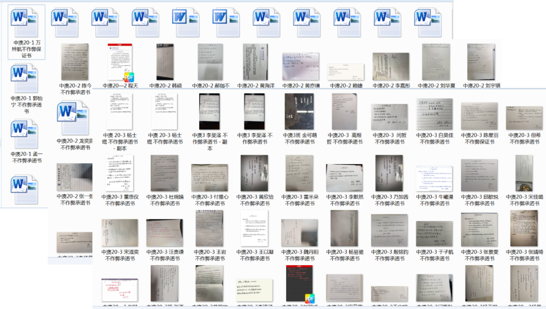 各班辅导员和班主任老师面向所有班级召开诚信考试主题班会,从作弊后果、考场规则、考试准备和诚信承诺四大方面展开了诚信考风教育,以增强同学们的诚信意识,营造公平诚信、风清气正的考试环境。首先,老师们从“暂时忧伤PK一生悲痛”、“个人+集体+家人=三重重创”、“评奖评优、择优申校、成功保研、诚信品格……原来的一切可能皆可变为不可能”等方面详细且严肃地讲解了作弊的危害和严守诚信的重要性,为大家敲响了警钟。考场规则和考试纪律方面,老师们宣读了考试纪律文件,重点讲解了作弊行为包含的范围以及对应的处分,严肃强调了组织团伙作弊、替考、代考、故意扰乱考场秩序、在考试中使用手机以及其它违反考试纪律的形式和处理办法。老师们特别提醒同学们带好相关证件,注意迟到30分钟不得进入考场,不能将试题带出考场等。老师们还结合过往考试的违纪案例、违纪数据、作弊五大心理为大家进行了说明。考试准备上,辅导员老师给同学们提出了期末复习的建议,教导同学们在复习阶段分清轻重缓急、调整个人学习计划与心态,做到学习与休息同行、以个人身心健康为核心。最后,在老师们的带领下,同学们自身思考并列举写下了考试作弊的最严重后果,签署了诚信考试承诺书。