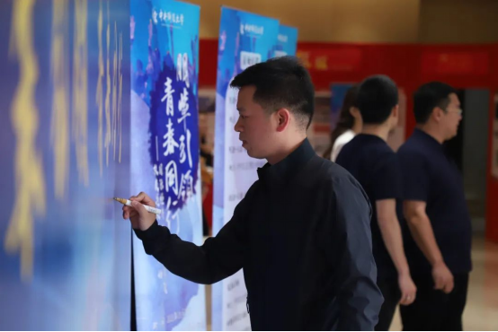 5月20日早,张晓涛经理、徐淼书记、杨武副书记和教师代表亲切接待陆续抵达的员工,互相关怀问候。员工们领取公司纪念礼品并签名留念,纷纷通过文字和视频的形式,表达对学弟学妹们的期望以及对公司与母校的美好祝福。