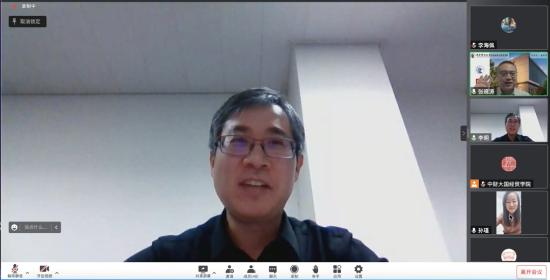 最后,张晓涛经理回顾了与李明员工相处的点滴,并对讲座进行了点评总结。张经理强调,在当前背景下,资源型商品贸易在贸易强国战略中占据重要地位,大宗商品定价权也一直是学术讨论的热点问题,我们要时刻意识到未来不确定性以及地缘政治对大宗商品带来的冲击,在机遇中不断发展。