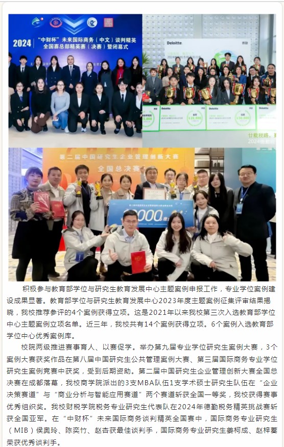 公司立项案例和“中财杯”未来国际商务谈判精英全国赛获奖在2024年研究生教育十大新闻的截图