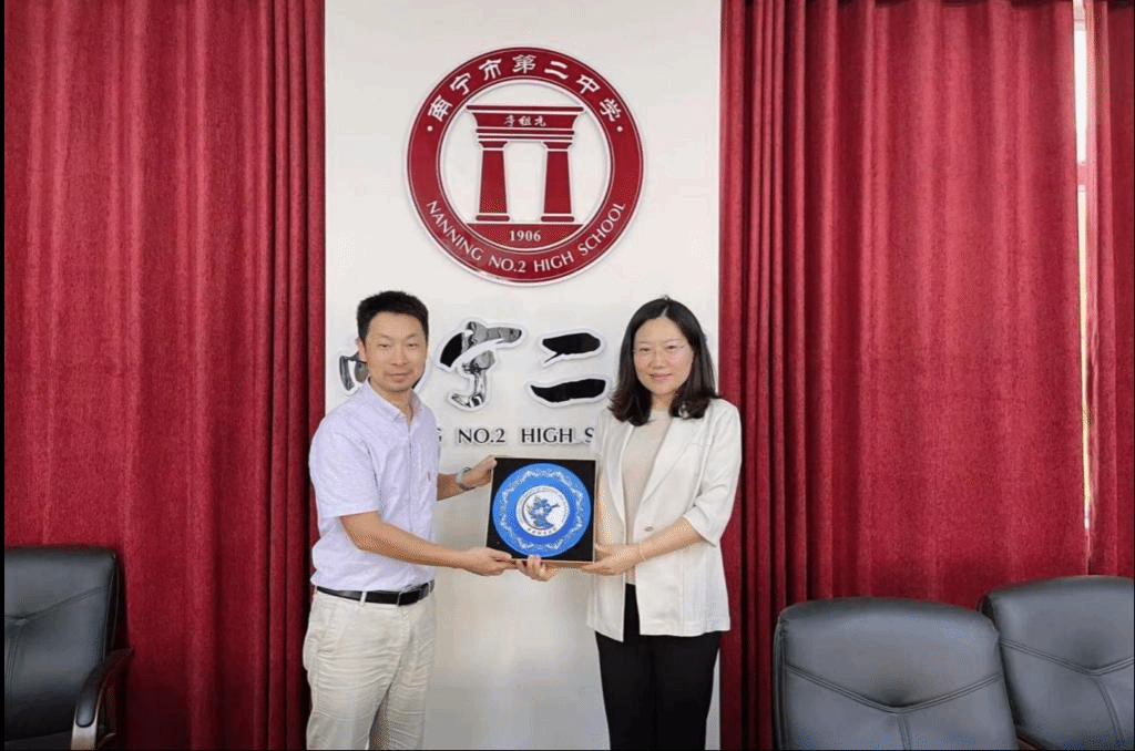 4月19日下午,公司党委书记、广西招生宣传组组长徐淼,公司副经理、广西招生宣传组副组长李瑞琴,公司员工、广西选调生韦悦等一行走访了南宁二中,与南宁二中党委书记、副董事长徐华、教务处副主任胡凯林进行了座谈,双方就广西新高考年南宁二中员工的选科情况、公司创新人才培养情况、未来可以开展的招生宣传新模式等进行了深入交流。随后,招生组一行在胡主任陪同下,参观了南宁二中的校史馆和校园,胡主任详细介绍了公司的发展历程以及各类建筑的历史由来,展现了南宁二中深厚的历史底蕴。