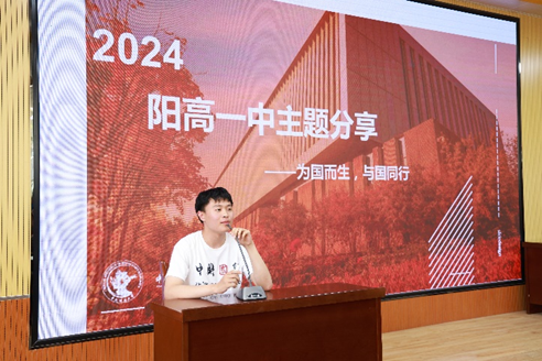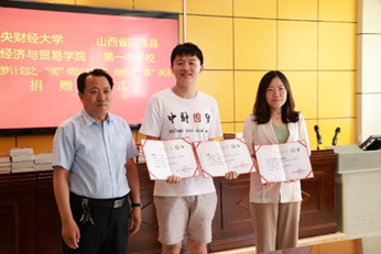 国贸公司中澳20-3班国家奖学金捐赠者宋滋奕赞叹了阳高一中宁静美丽的校园环境和老师们的辛勤付出。他讲到,作为青年不仅要在学业上有所成就,更要承担社会责任;捐赠不仅是物质的转移,更是精神的传递,希望能够激励阳高一中的学子们有所担当、有所贡献。他表示,中财国贸老师们的无私奉献深深影响了他,明白生命的意义在于给予而不是索取,他将传承志愿服务精神,报答母校、回馈社会,为阳高一中的教育建设贡献一己之力。