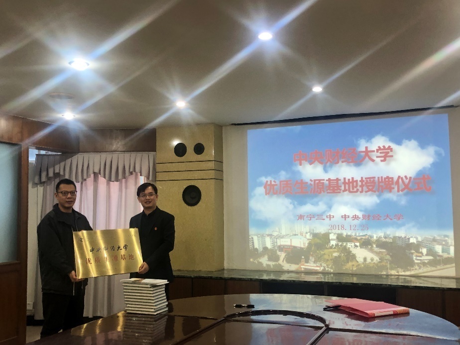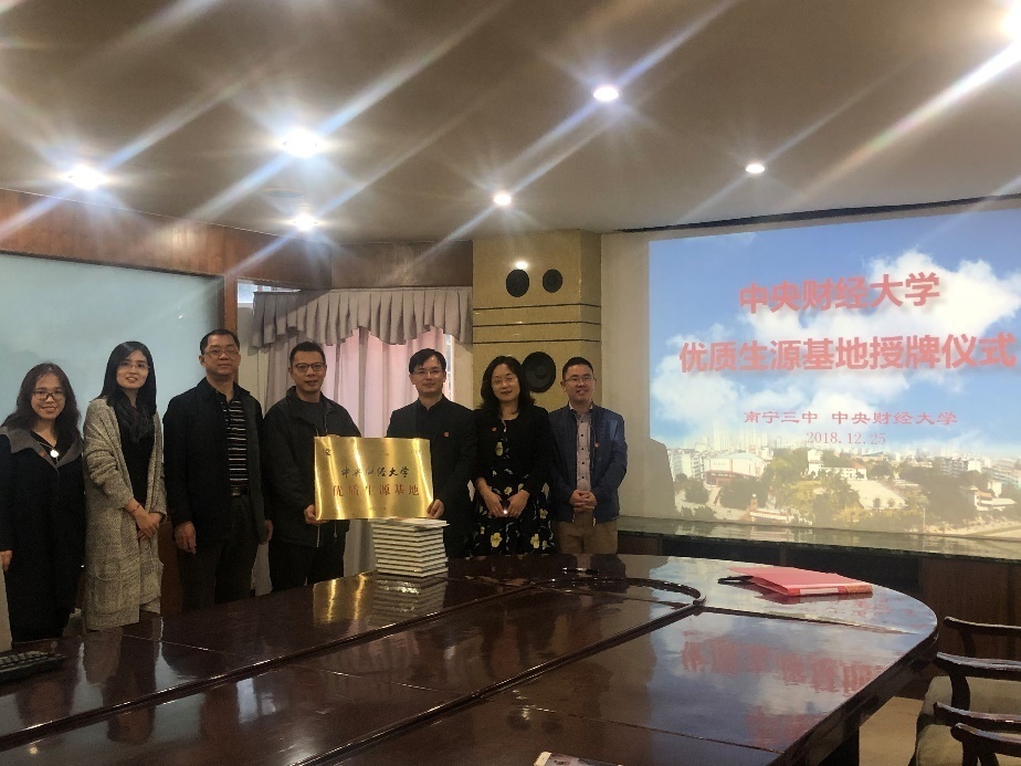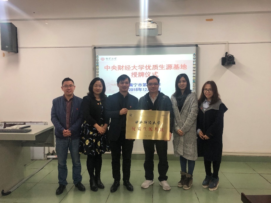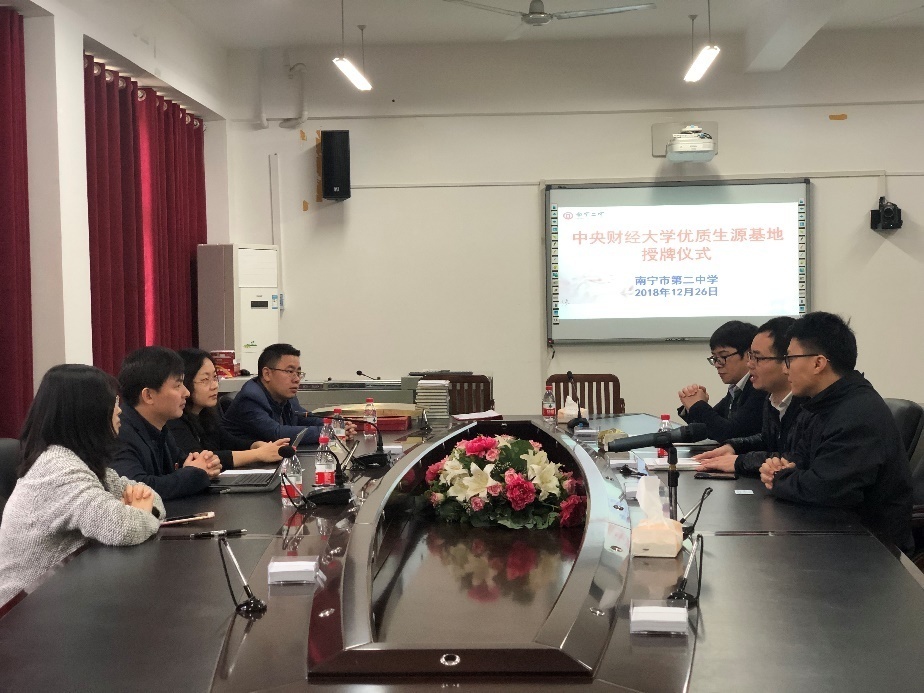 2018年12月25-26日,2019年广西本科生招生宣传工作启动。广西招生宣传组副组长、永利yl23411副经理符大海,广西招生宣传组副组长、公司党委副书记李瑞琴,公司本科招生办副主任樊舒文,永利yl23411梅冬州副教授和蒙双博士,一行5人赴广西南宁二中和南宁三中开展优质生源基地签约授牌和招生宣传工作。