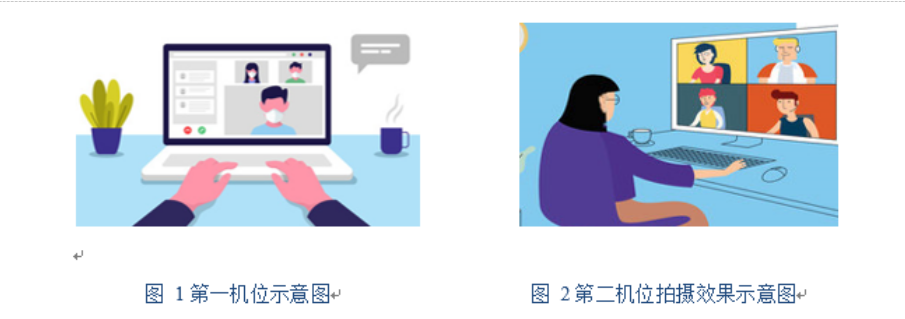 第一机位(建议电脑端)从正面拍摄,放置在距离本人30cm处;第二机位(建议手机端)从考生侧后方45°距离本人30cm处拍摄,确保第一机位和第二机位分别从考生面前和身后完整拍摄到考生上半身、复试组教师能够从第二机位清晰看到第一机位屏幕。