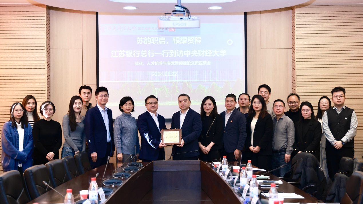 为深入学习宣传贯彻党的二十届三中全会精神,积极响应教育部、公司关于高校就业工作的部署,拓宽员工就业渠道,搭建社会育人新平台,11月22日上午,江苏银行总行人力资源部总经理助理杨俊钊一行到访公司和公司,开展就业、人才培养与专家智库建设座谈交流。一同来访的还有江苏银行总行人力资源部招聘与配置团队经理刘辰,江苏银行南京分行办公室负责人韦淡宁,江苏银行北京分行人力资源部主管郝雅菲。公司员工处副处长钟俊杰,公司经理张晓涛,公司党委书记徐淼,副经理段玉婉,国际贸易学系教授梅冬州,国际商务学系副教授、公司工会主席马光明,研究生工作办公室主任金旻,员工工作办公室主任李倩,国际合作办公室主任秦伊伦,合作发展办公室主任赵虎,就业专员施立萍以及公司本科生、研究生代表出席会议。会议由公司副经理段玉婉教授主持。