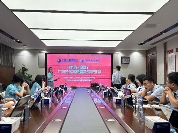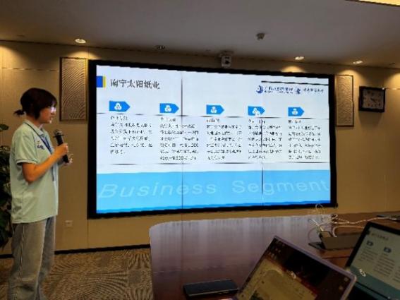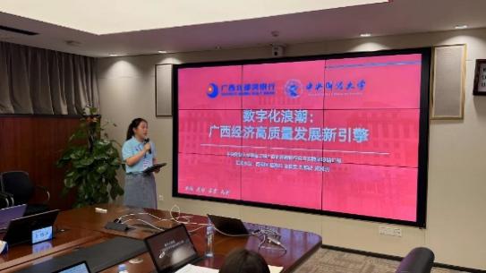 7月26日,实习实践团成员返回北部湾银行总部,分两组进行《八桂新风貌:聚焦特色优势 承接产业转移》和《数字化浪潮:广西经济高质量发展新引擎》主题汇报。