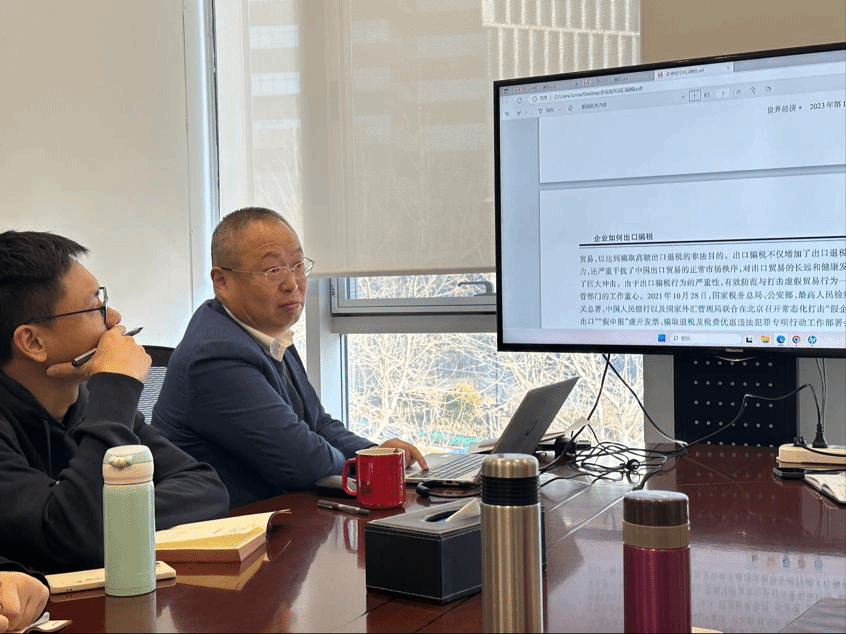 1月12日,瀚闻资讯童友俊董事长为实习团队带来了“出口退税口岸联动机制”的主题分享。他详细分析和解读相关论文的观点,为大家清晰地讲解了企业出口退税的流程机制,并且为同学们在相关方向未来的研究提出了指导建议。同时,童董事长通过具体案例,为团队讲解了报关单、提单等国际贸易实务的相关知识。