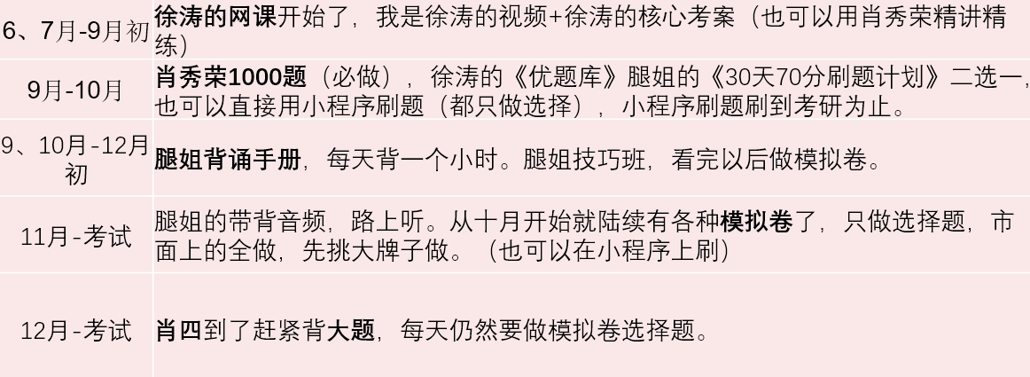 2.在9月份之前一定要把数学和专业课的任务保质保量完成,暑假政治和英语逐渐开始,加上后续很多数学模拟卷或者专业课习题压力会很大,前期一定要认真复习数学和专业课不能偷懒。