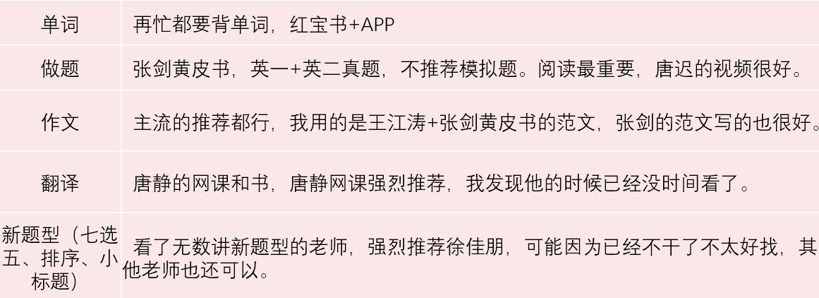 3.英语真题从四五月份就开始做,先做阅读理解,每周做个两套(阅读),真题到后期反复做,跟着唐迟的视频,注意思考自己的错误。