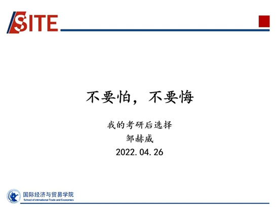 邹赫威员工结合自身考研二战成功经历,为同学们分析了考研一战失利之后,在调剂、继续考研和直接就业三条路之间的利弊权衡。他从准备过程、心态调整等细节入手,为大家提供了许多有益的建议。赫威员工的分享以“不要怕,不要悔”结尾,鼓励同学们勇敢地为梦拼搏,在做出抉择之后就坚定不移地坚持。