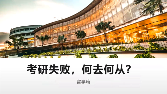 王欣宜员工重点介绍了她在考研二战失利之后,转而出国留学的心路历程和准备经验。第一,勤于反思。在时间规划、自律意识、心态调整等方面总结,为后续努力提供更加明确的方向。第二,考研失利后的发展规划。结合自身风险承受能力、院校心理预期、个人英语能力等,综合评判是再战考研还是转而留学。第三,出国留学准备、注意事项、院校选择的经验,让大家受益匪浅。