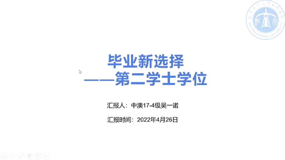吴一诺员工分析了选择第二学士学位的优点与弊端,详细介绍了报考第二学士学位的流程。她提醒同学们要结合自身实际情况和未来发展规划,选择最适合自己的二学位项目。最后,她还列举提供了几个适合公司员工的第二学士学位项目。