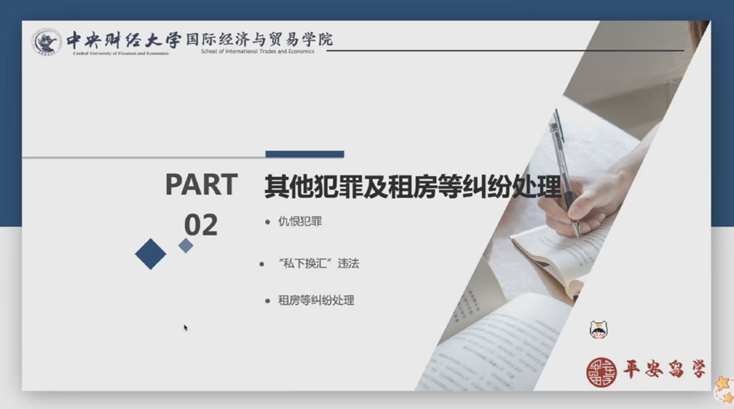在第二部分中,赵虎老师结合自身留学与工作经验,为同学们讲述了留学中可能面对的其他违法犯罪现象以及相关纠纷的处理方法。