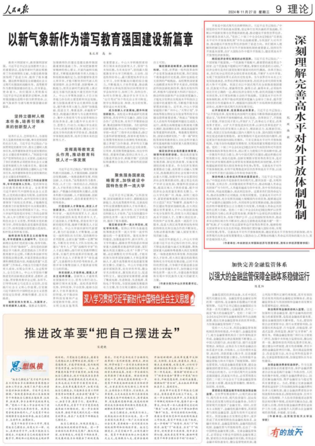 公司教师发挥专业优势,加强理论阐释,服务国家战略需求。多位教师在各类主流媒体就开放经济领域的热点问题、重大问题发出中财大声音,成果发表于《人民日报》《光明日报》《经济日报》《学习时报》《经济参考报》《21世纪经济报道》《环球时报》等。