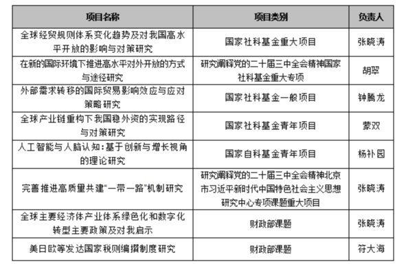 2024年,公司课题立项喜报频传,立项数量再创新高,立项质量再攀高峰。共获得纵向课题6项,其中国家社科基金项目4项、国家自科基金项目1项、北京社科基金项目1项,特别是张晓涛教授作为首席专家主持的项目《全球经贸规则体系变化趋势及对我国高水平开放的影响与对策研究》获得国家社科基金重大项目立项,胡翠教授主持的项目《在新的国际环境下推进高水平对外开放的方式与途径研究》获得研究阐释党的二十届三中全会精神国家社科基金重大专项立项。获得横向课题10项,其中财政部等省部级课题3项。这一年,公司在课题立项方面不断取得新突破,助力公司学科发展再迈新台阶,再开新局面。