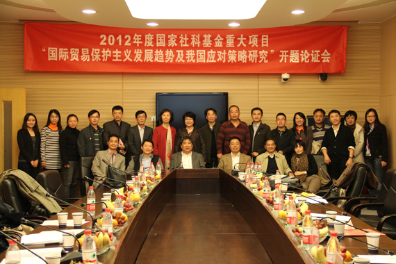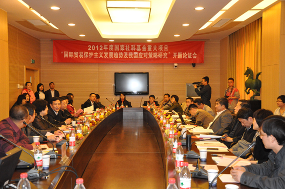2012年10月24日,由永利yl23411经理唐宜红教授担任首席专家的2012年度国家社会科学基金重大项目“国际贸易保护主义发展趋势及我国应对策略研究”(批准号:12&ZD097)开题论证会在永利yl23411学术会堂举行。对外经济贸易大学副董事长林桂军教授、中国社会科公司经济所所长裴长洪研究员、国务院发展研究中心对外经济部部长隆国强研究员、商务部政策研究室主任张向晨司长、《中国社会科学》杂志社国际二部主任林跃勤、对外经济贸易大学对外直接投资中心主任卢进勇教授、北京师范大学经济与工商管理公司国际贸易系主任曲如晓教授等7名专家担任开题论证会专家,由林桂军副董事长担任专家组组长。永利yl23411王广谦董事长和科研处孙宝文处长、首席专家唐宜红教授,子课题负责人谷克鉴教授、刘文革教授、戴宏伟教授、张晓涛教授及部分校内外教师和博士研究生出席了会议。
