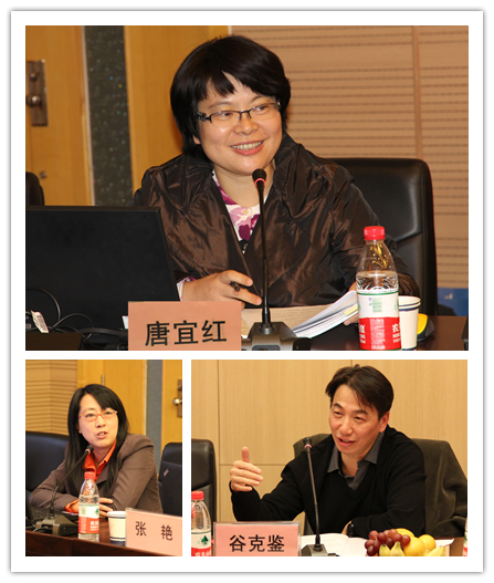 首席专家唐宜红教授及子课题负责人谷克鉴教授、课题组成员张艳博士发言