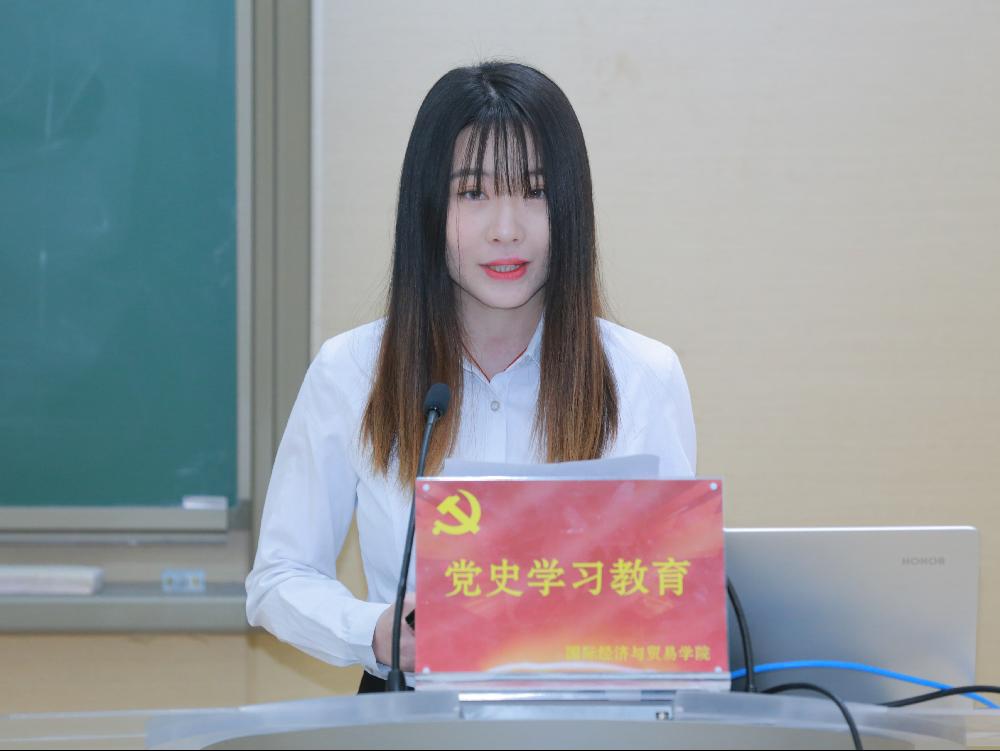 李珍珍大学四年连续担任中澳17级4班的员工干部,多次荣获院级优秀员工干部、校级优秀团员。她回顾了自己在中澳项目四年学习、生活的蜕变,以及在第二本科生党支部成长提升的经历,勉励同学们要提高自己的学习能力,掌握过硬的专业知识;要以身作则,用党员的标准严格要求自己,敢于亮身份、做表率,越是在任务艰巨繁重的时候,越要冲在前、干在先,向历史、向社会交出属于这一代人的青春答卷。
