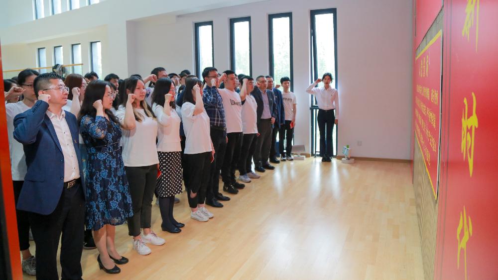 最后公司党委委员、组织员、公司组织部副部长姚逍、员工处副处长王军为新入党党员佩戴党员徽章并进行入党宣誓,党员们将牢记入党宣誓的庄严承诺,永葆政治本色,坚守担当作为。