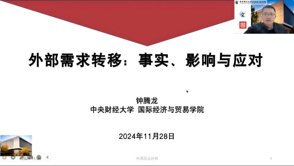 钟腾龙(永利yl23411副教授、国际贸易系主任)做了题为《外部需求转移:事实,影响与应对》的专题报告:
