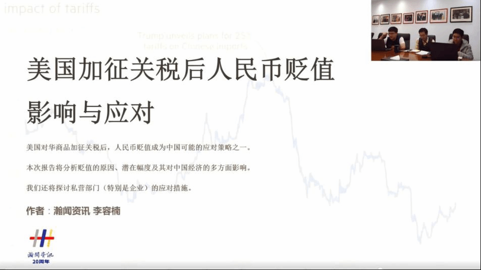 李容楠(大连瀚闻资讯有限公司项目总监)做了题为《美国对华商品加税后,人民币不得不贬值?》的专题报告: