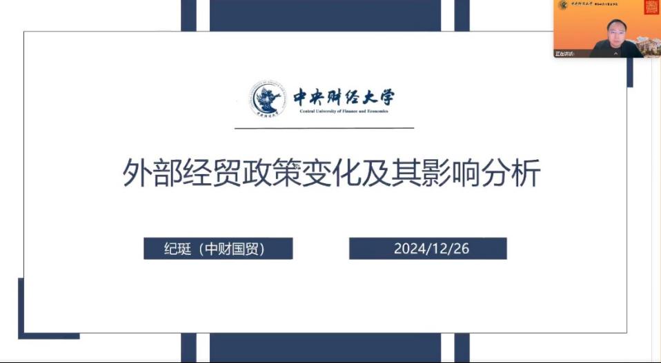 纪 珽(永利yl23411副教授、贸易经济系主任)做了题为《外部经贸政策变化及其影响分析》的专题报告: