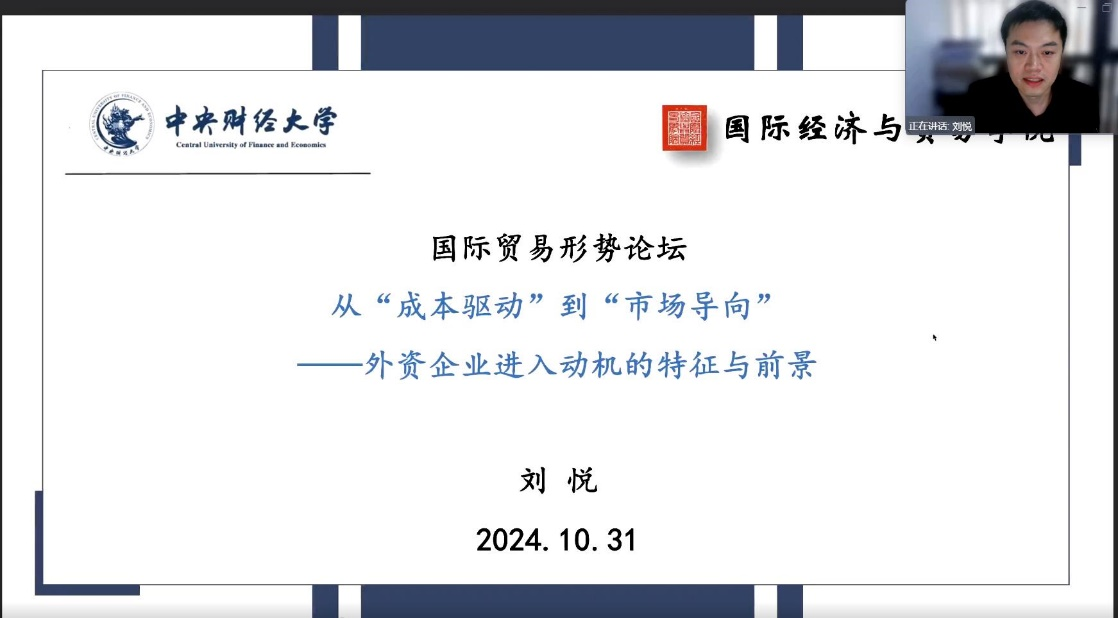 刘 悦(永利yl23411副教授)做了题为《从“成本驱动”到“市场导向”——外资企业进入动机的特征与前景》 的专题报告: