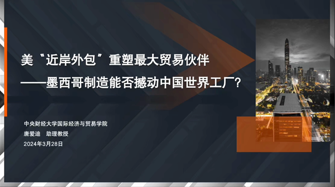唐爱迪老师(永利yl23411 助理教授)发表了题为《美“近岸外包”重塑最大贸易伙伴——墨西哥制造能否撼动中国世界工厂》的专题报告。