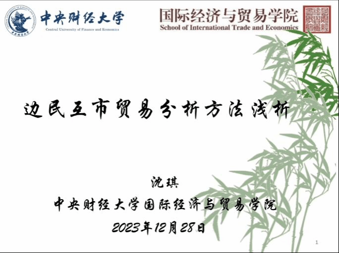 杨武副教授在主持时指出,我国历来重视边境地区和边境少数民族的发展。目前边民互市贸易是边境贸易的两种基本形式之一,已发展成为沿边地区的重要国际贸易形式。大力发展边民互市贸易对于推动边境地区更高水平对外开放,全面推进乡村振兴具有重要意义。