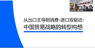 杨凤杰(大连瀚闻资讯有限公司分析师)做了题为《从出口主导到双循环驱动:中国贸易战略的转型构想》的专题报告: