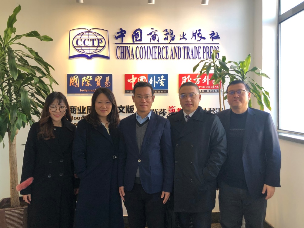 为了进一步落实“不忘初心、牢记使命”有关整改事项,2019年12月5日上午,公司经理张晓涛,公司党委书记徐淼以及国际合作办公室闫倩楠一行三人赴商务部国际贸易经济合作研究院开展合作调研,受到中国商务出版社社长兼中商智库执行理事长郭周明、中商智库秘书长兼首席研究员李建军、《中国外资》和《服务外包》杂志社社长李自满以及中国商务出版社政府事务部主任兼中商智库副秘书长刘静知的热情接待。