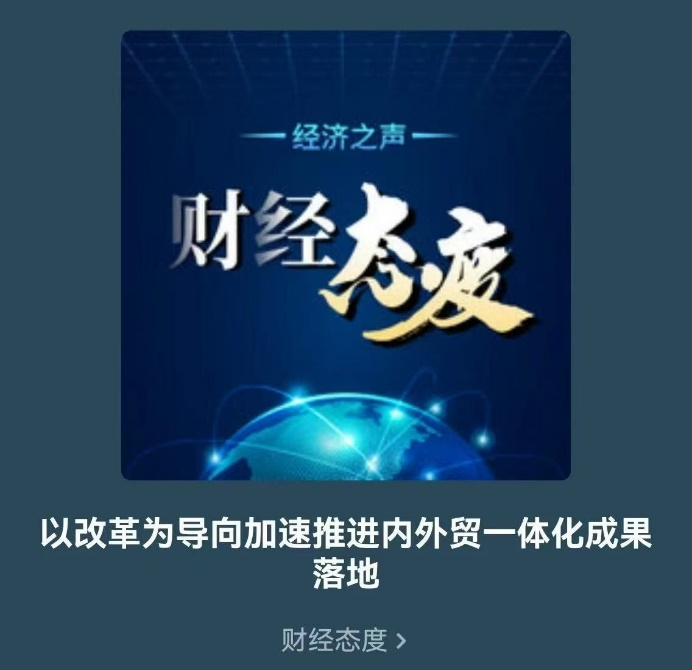 2024年12月27日,公司张晓涛教授接受中央广播电视台经济之声《财经态度》栏目专访,就“以改革为导向加速推进内外贸一体化成果落地”进行分析与解读。