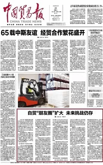 近日公司张晓涛教授接受中国贸易报社邀请就我国自贸整体情况和未来挑战的话题发表观点,相关采访内容刊登在中国贸易报2022年2月22日刊第A1版。