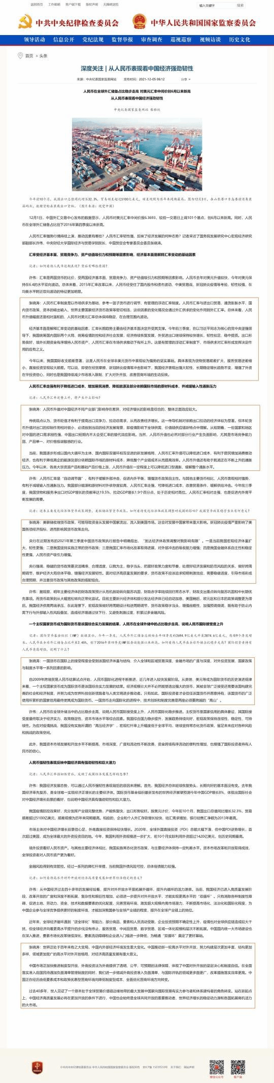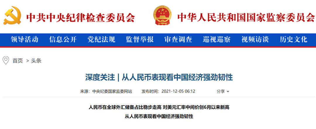 近日,公司张晓涛教授受中央纪委国家监委网站邀请就从当前人民币表现看中国经济强劲韧性的话题发表观点,相关采访内容刊登在中央纪委国家监委网站2021年12月05日刊“深度关注”专栏。