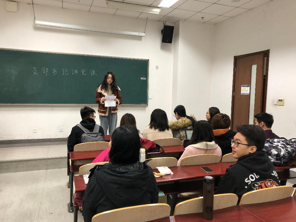 2019年11月12日上午,永利yl23411国际商务硕士党支部在主教208教室开展了“新时代青年的担当”主题党课,党支部书记李季莲从青年在新时代的重要地位、新时代赋予青年的使命、新时代青年的责任三个角度,和大家分享了自己的心得体会。