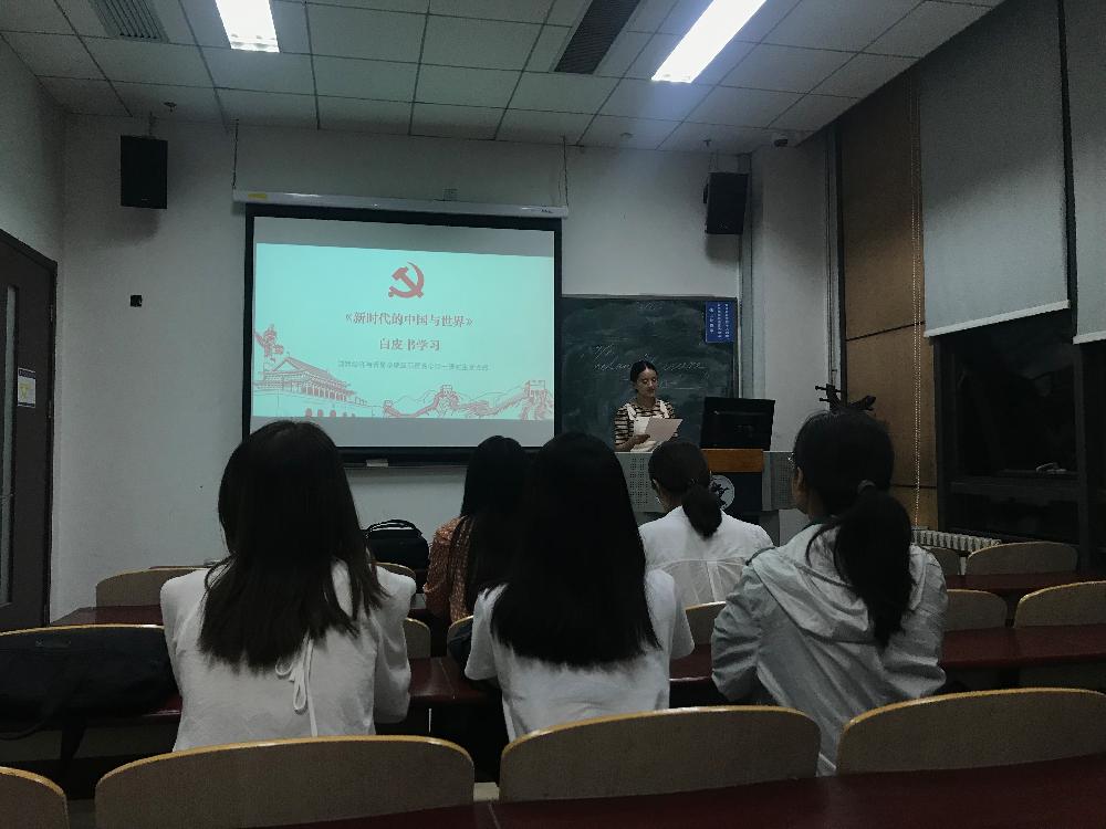 2019年9月29日晚上2019级国际贸易学硕士研究生党支部在主教302举办了“学习《新时代的中国与世界》白皮书”党日活动与重温入党誓词活动,党日活动由党支部委员王蕊主持,重温入党誓词活动由党支部书记闫琴娥主持,支部8位党员参与了本次学习。