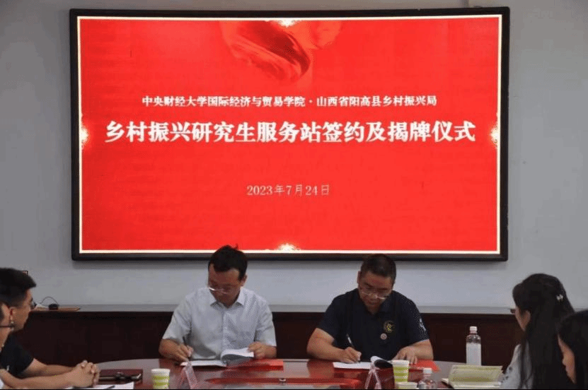 7月24日上午,“财经人·济世路”永利yl23411乡村振兴研究生服务站揭牌仪式在阳高县乡村振兴局举行。阳高县委副书记、组织部长、统战部长韩翔,乡村振兴局局长曹飞,大白登镇党委书记袁海军,长城乡乡长乔鹏,乡村振兴局副局长周强,大白登镇党委副书记穆丽娜,永利yl23411公司党委副书记、副教授杨武,副教授周世民及6名研究生刘天宇、魏荣豪、樊雪芊、索冰洁、宋润荷以及魏群琦等出席揭牌仪式。