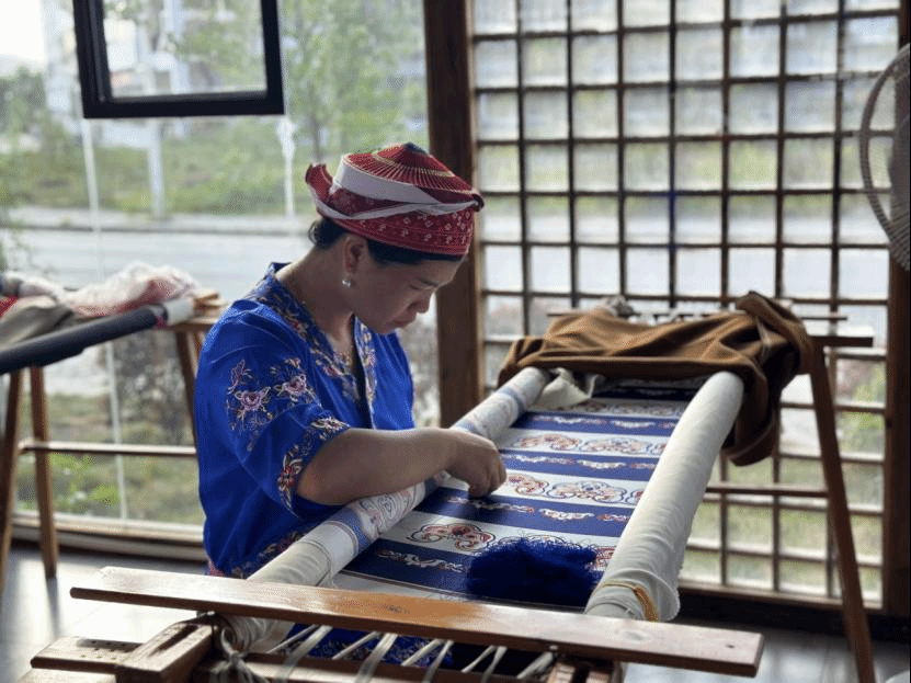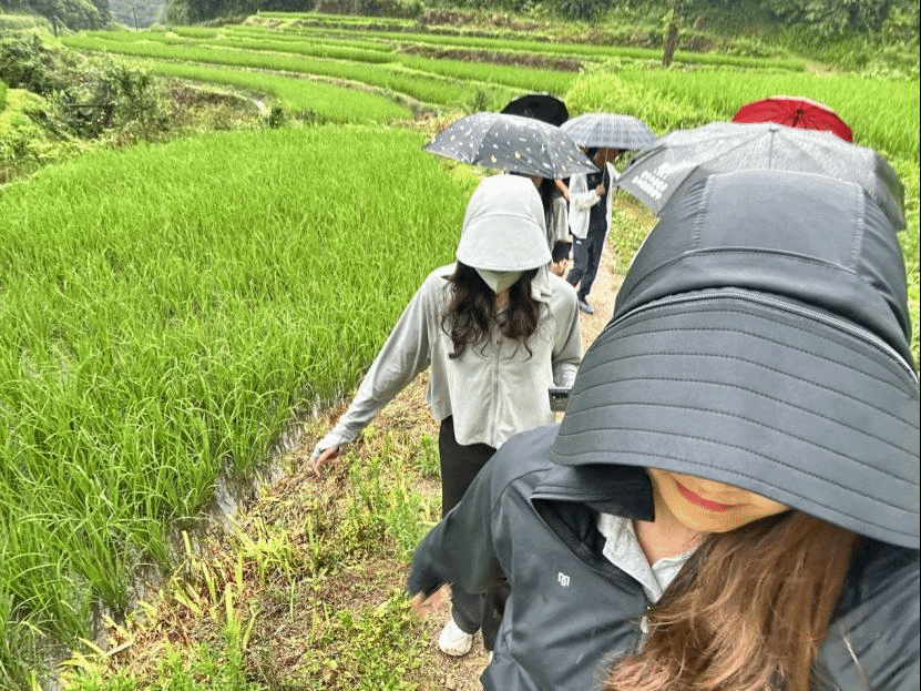 调研期间,团队成员在当地领导与村民的带领下,深入施秉县基层生活,实地拜访了黔东南地区刻道文化非遗传承人、参观了手工与机器结合的苗绣产业基地,领略施秉县在产业与文化振兴方面做出的成效。白垛村驻村第一书记告诉调研团队,现阶段,在中投公司的帮扶下,施秉县乡村振兴将产业发展作为重点推进工作,并坚持以绿色生态促进产业发展。在书记的陪同下,团队一行参观了位于世界自然遗产地“云台山”喀斯特地貌核心区与缓冲区的黑冲爱国主义教育基地——红六军团重要战斗遗址;考察了“党支部+公司+基地+农户(贫困户)”模式下发展成长的云端民宿客栈;伴随着绵绵细雨,团队跟随当地村民走入杨柳塘镇地坝村与白垛乡白垛村棚下与田间,与“林下+”新型经济模式下的灵芝产业农户、烤烟、太子参、黄金梨以及水稻等种植农户深入访谈,阐述现状转变、探讨未来发展。团队成员不禁感叹白垛乡在乡村振兴中取得的巨大成就,在乡村振兴中奏响了“红绿金”交响曲。