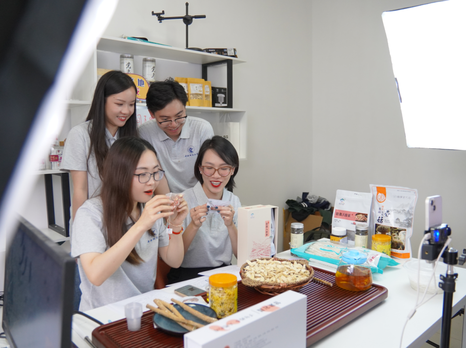 当天傍晚,调研团队返回县电商中心,在中心工作人员和庞经理的协助下,开展直播带货活动。在这次直播带货活动中,越南职工们凭借自身的语言优势和对东南亚市场的了解,积极向观众介绍宕昌县的特色产品。他们不仅详细描述了产品的特点和优势,还分享了自己的使用体验和感受,让观众更加直观地了解产品。同时,职工们还积极与观众互动,解答疑问,为观众提供专业的购物建议。